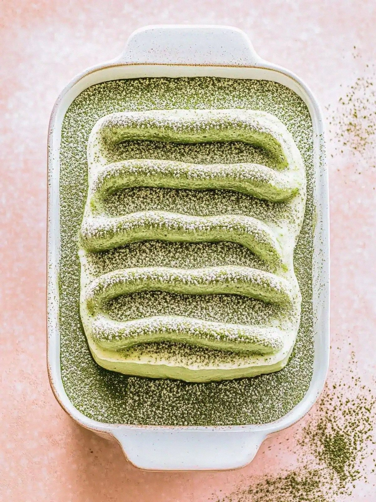 - Just before serving, dust the top with a generous sprinkle of matcha powder. The dusting not only adds visual appeal but also intensifies the green flavor. Slice with a sharp knife, wiping the blade between cuts to keep the layers neat. Serve chilled, and watch as your guests marvel at the vibrant color and luscious texture.